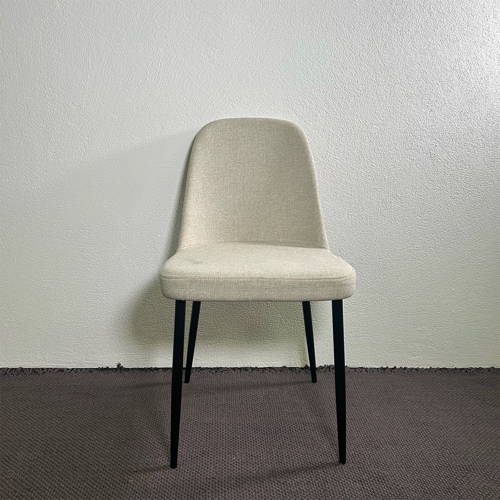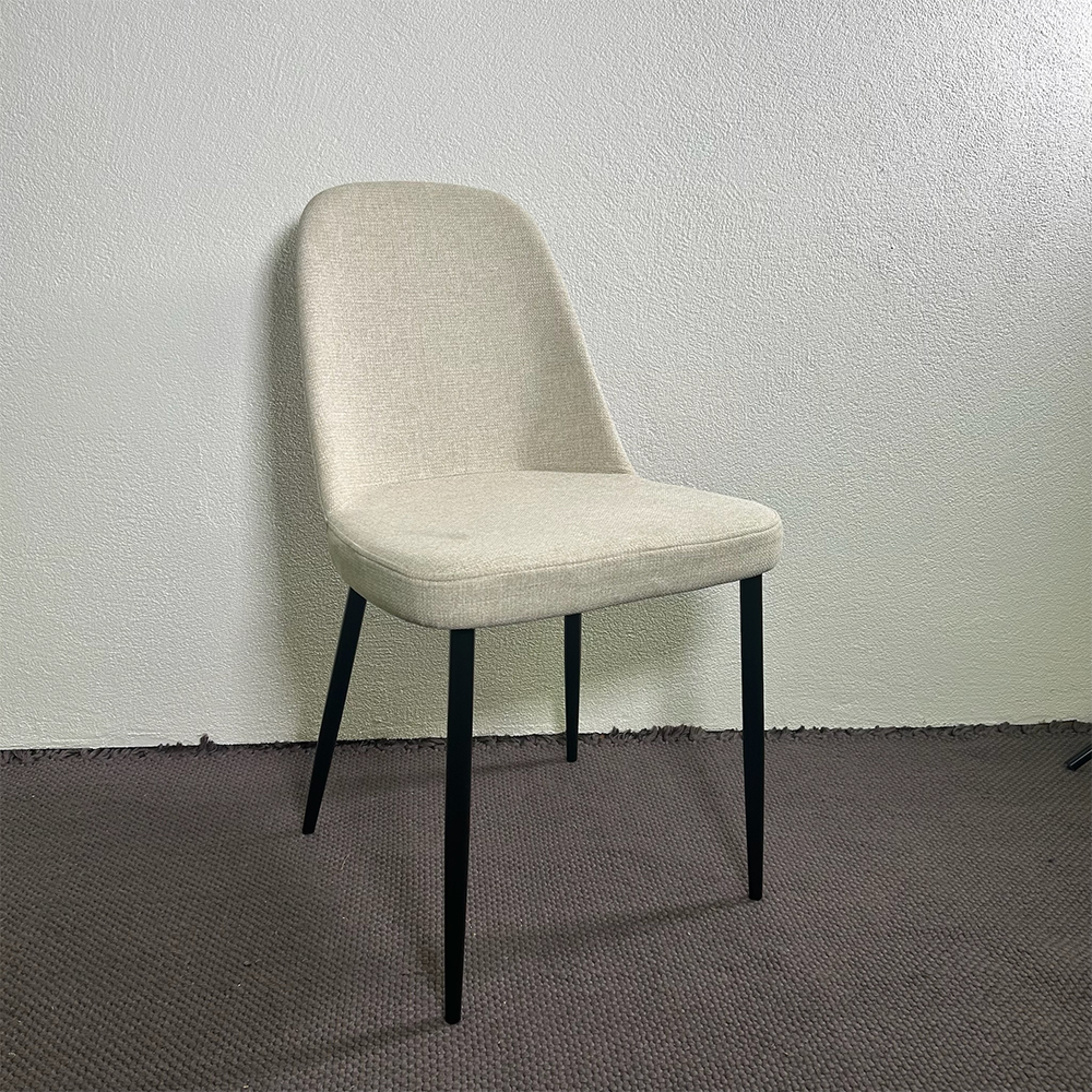 Sedia con struttura in metallo nero e seduta imbottita rivestita in tessuto beige.