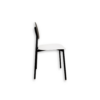 Sedia con seduta in polipropilene bianco e struttura in metallo verniciato nero opaco.