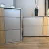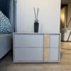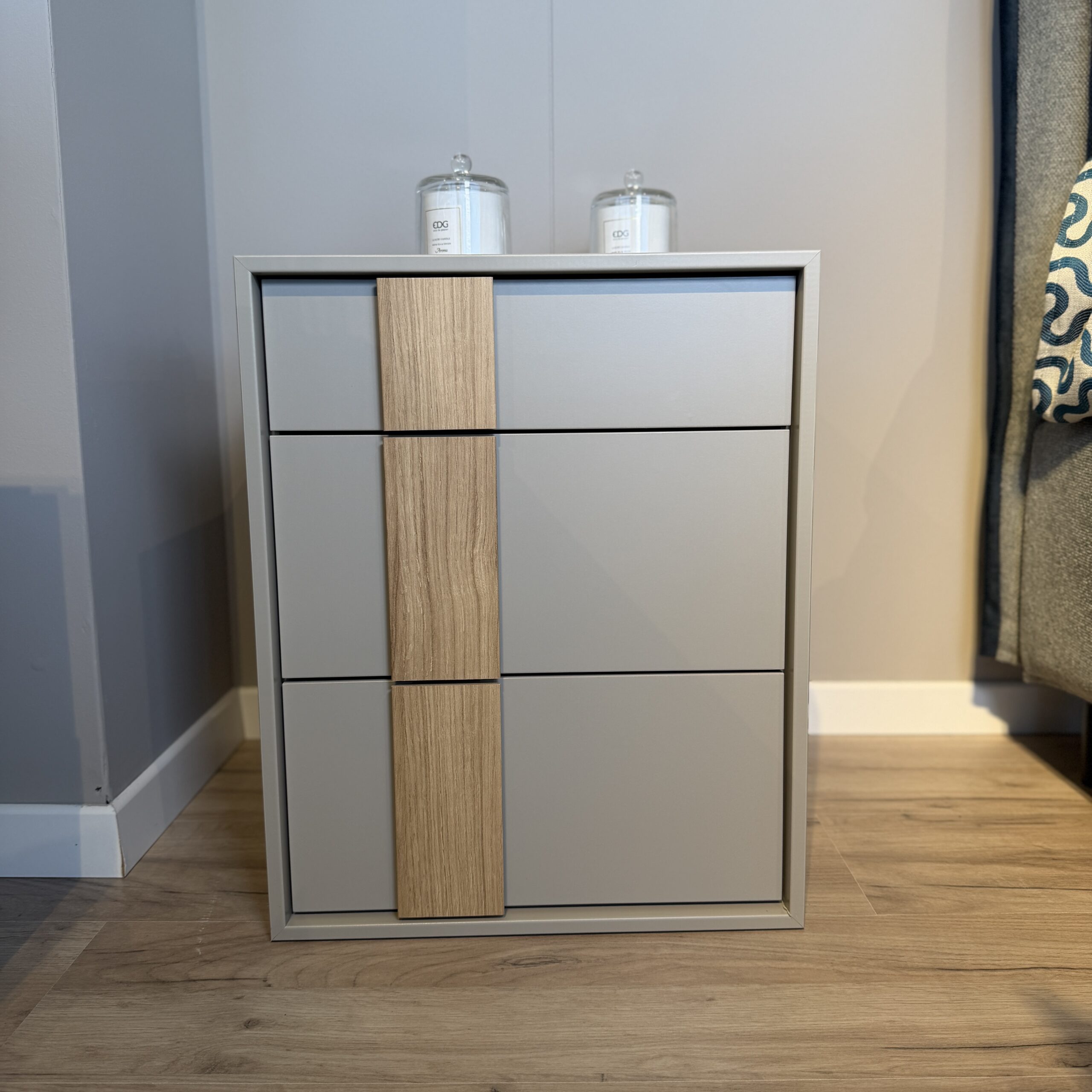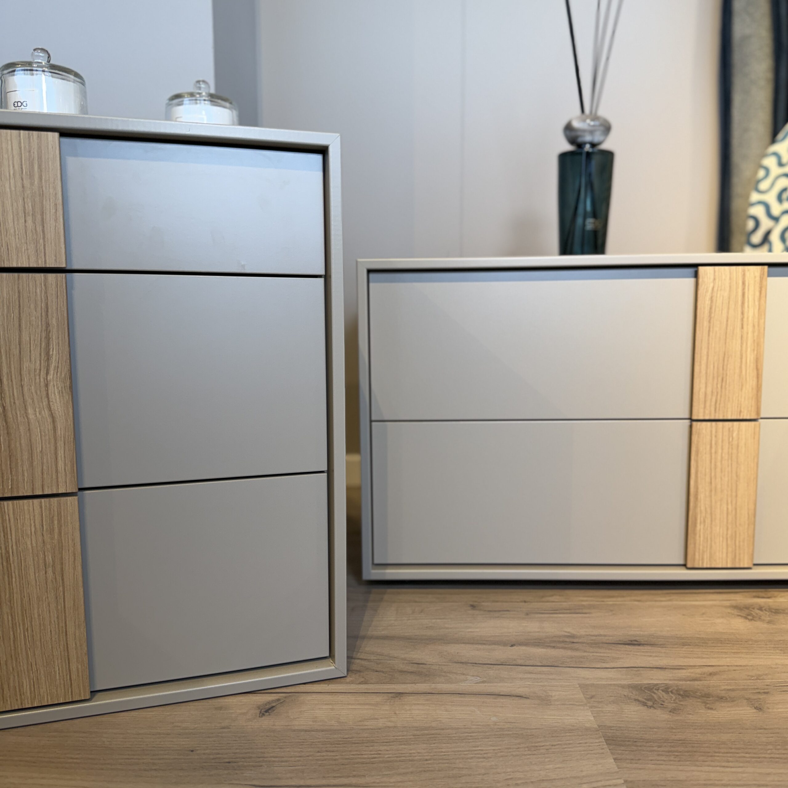 La sua composizione intelligente unisce un comodino con due cassetti e uno con tre cassetti, offrendo la massima versatilitร per l’organizzazione.
