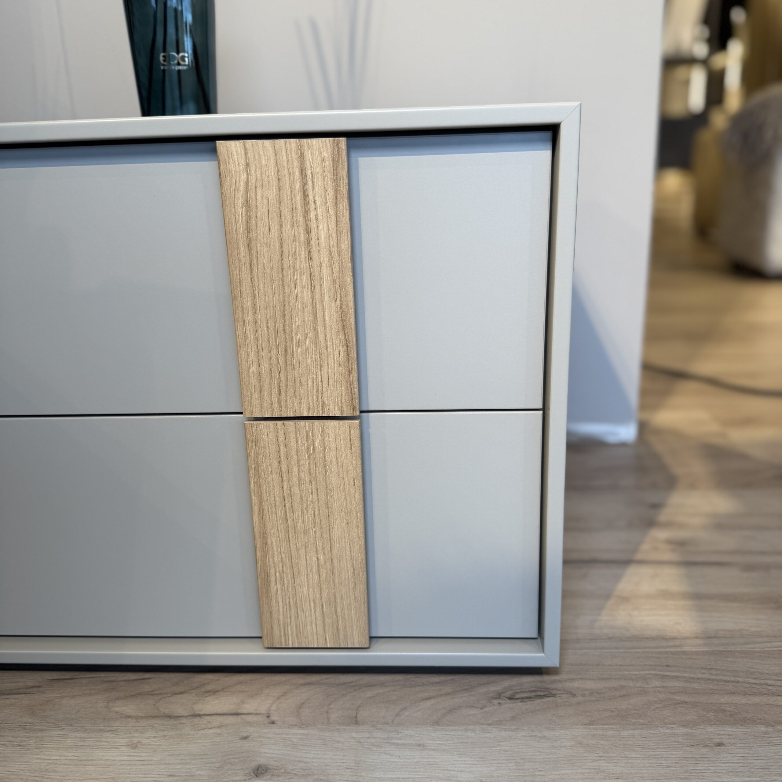 Il design pulito della struttura รจ impreziosito dal tocco di calore delle maniglie in legno Mattwood Honey, che creano un contrasto naturale e accogliente.