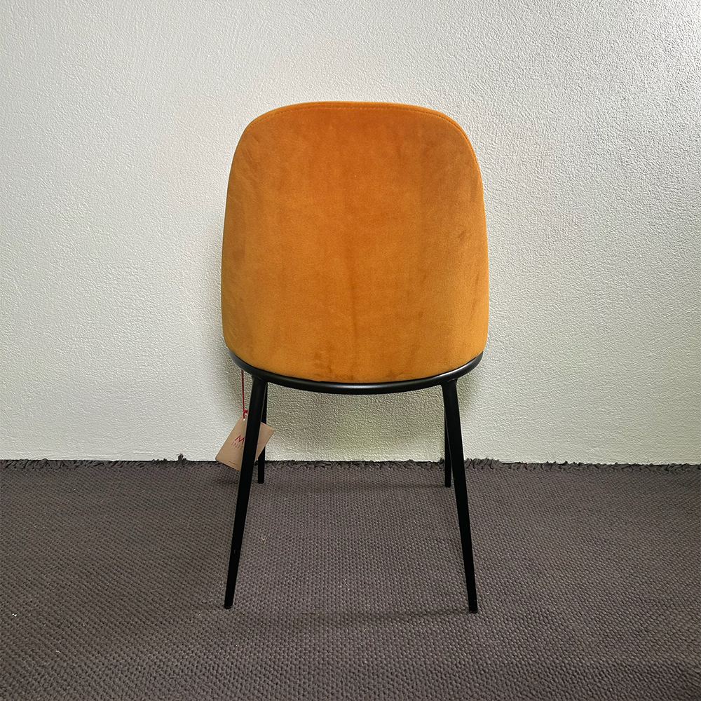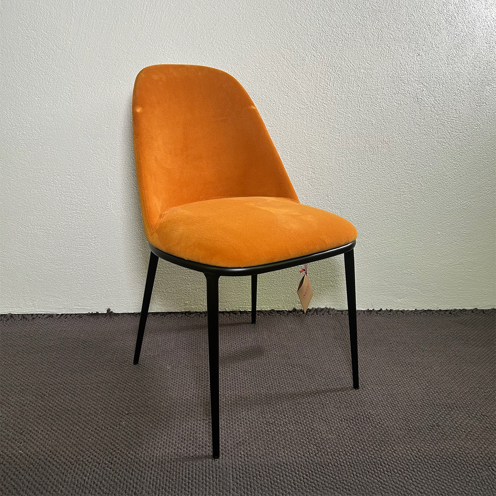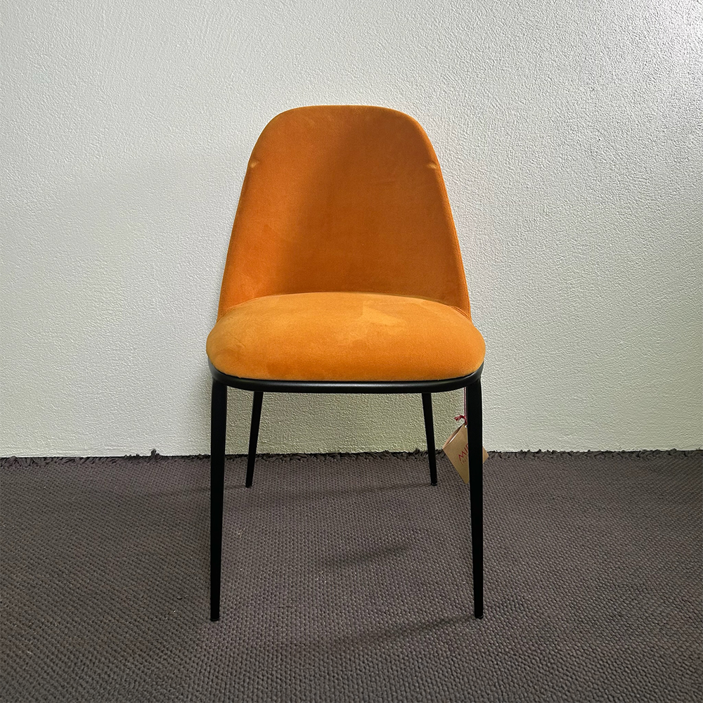 La struttura in metallo verniciato nero garantisce soliditร e durata nel tempo, mentre la seduta imbottita, rivestita in morbido velluto arancione, offre un piacevole senso di accoglienza.