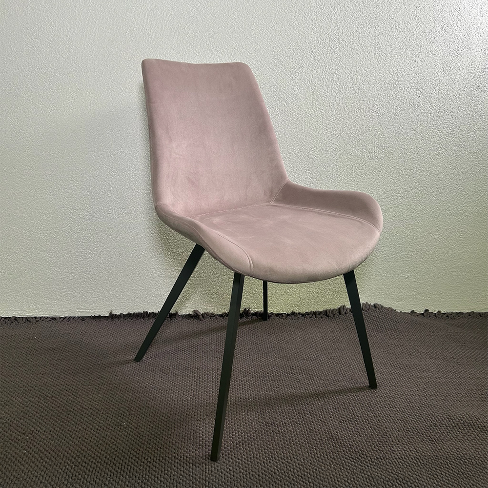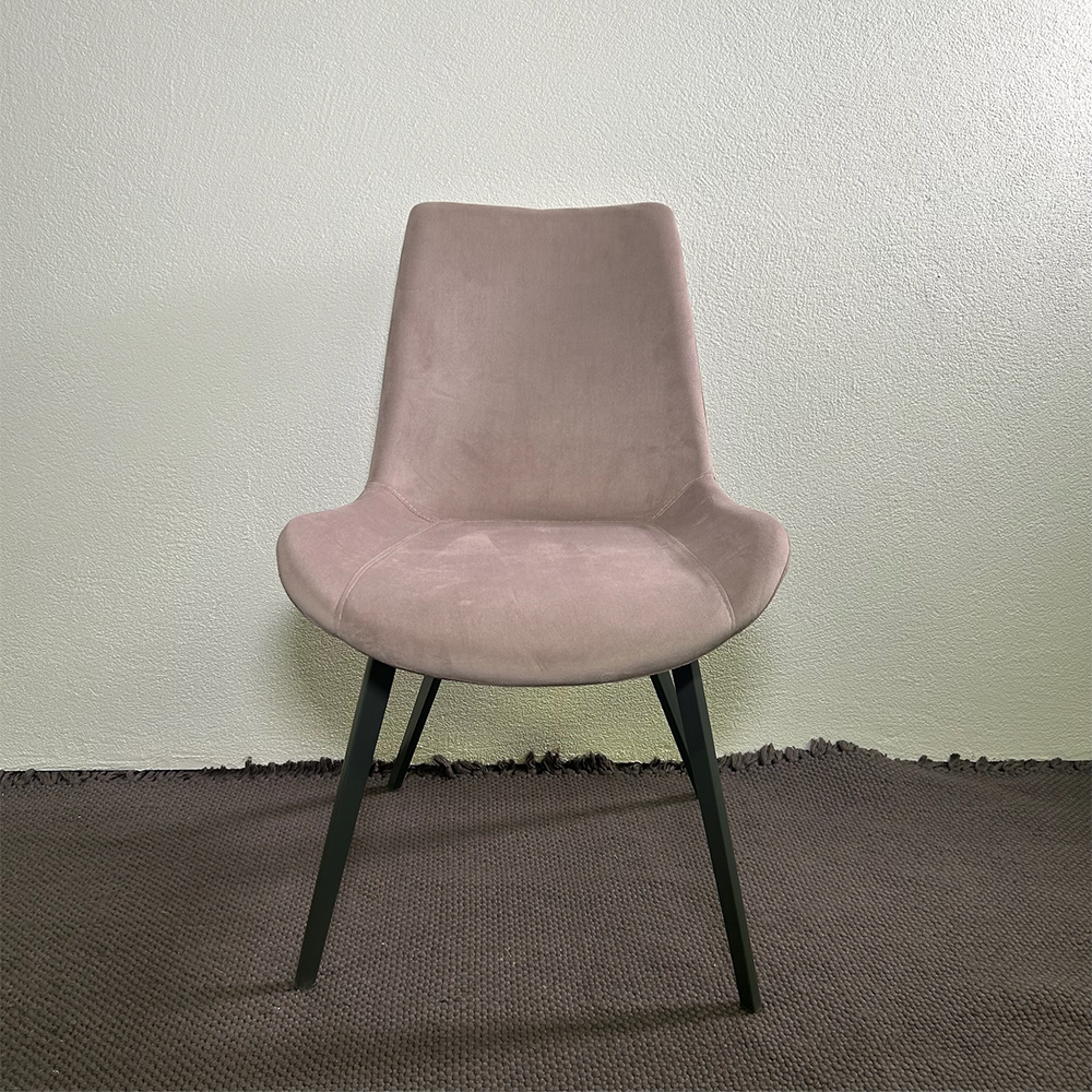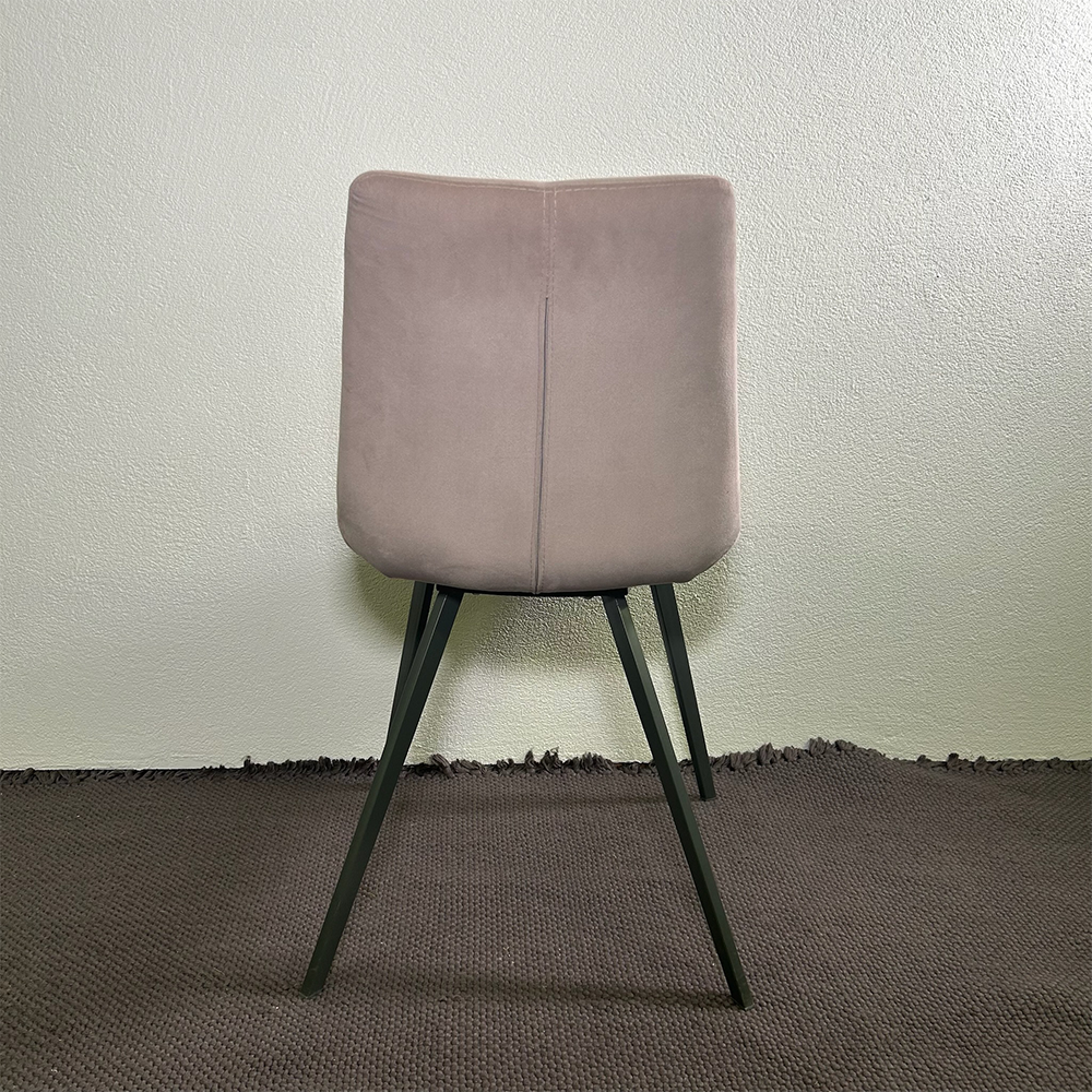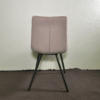 Il set comprende quattro sedie con struttura in metallo color grafite, robusta e stabile, e una seduta imbottita rivestita in tessuto microfibra effetto velluto lilla, morbido al tatto e facile da pulire.