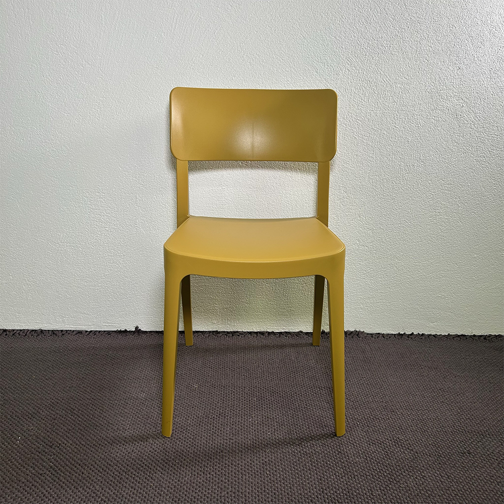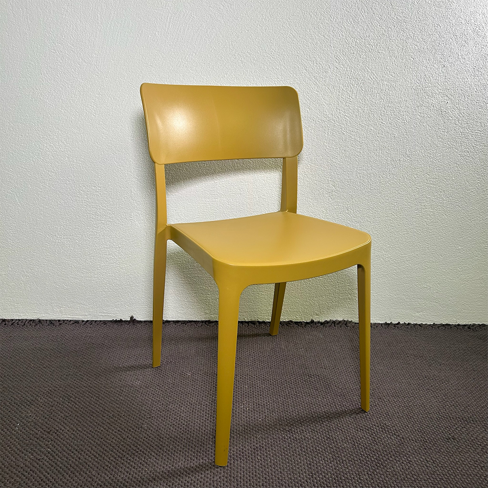 La sedia Mimosa รจ proposta in un pratico set da quattro, realizzata interamente in polipropilene giallo per dare alla zona pranzo o alla cucina un tocco luminoso e fresco.