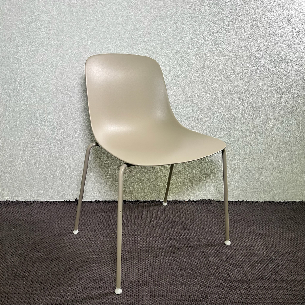 La scocca in polipropilene color sabbia offre resistenza e comfort, mentre la struttura in metallo garantisce soliditร e lunga durata.