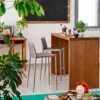 Lo sgabello BOHEME CB1393 รจย moderno e versatile, lineare ed eleganteย conย struttura a 4 gambe a sezione conicaย inย tubolare di acciaioย conย poggiapiedi,ย il tuttoย verniciato in tinta con la seduta.