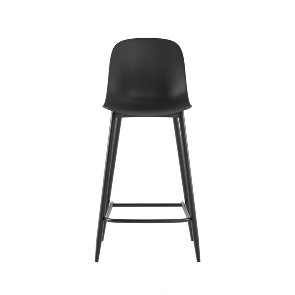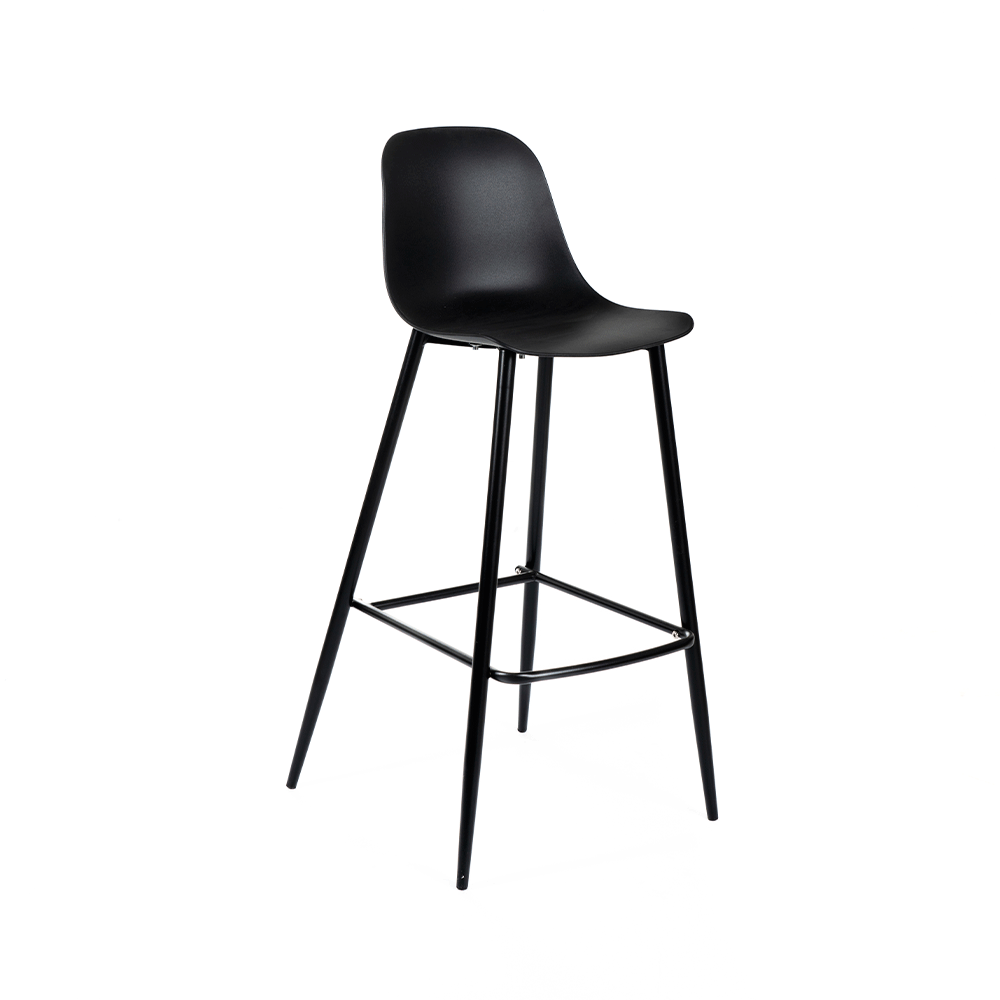 Sgabello con struttura in metallo verniciato nero e seduta in polipropilene nero.