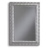 Questa specchiera รจ un raffinato complemento d’arredo, caratterizzato da una cornice argentata con dettagli decorativi intricati.