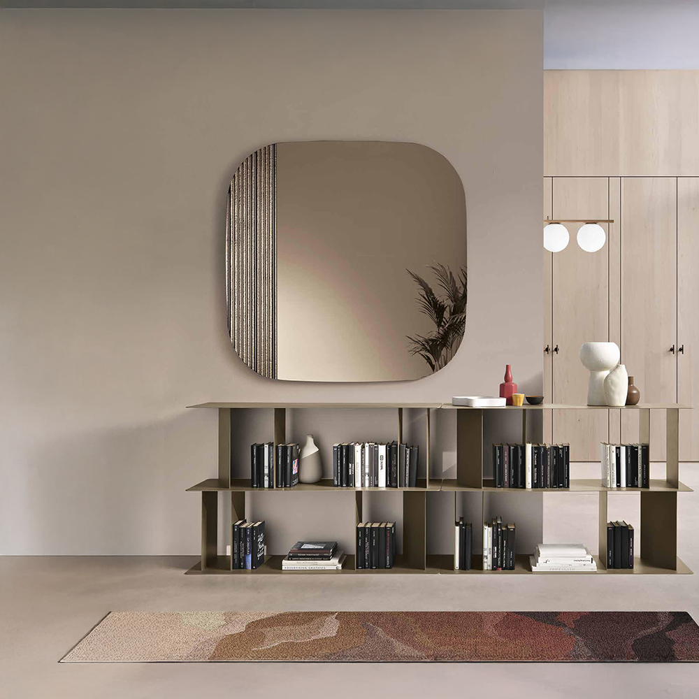 Lo specchio Eris presenta una forma quadrata che ne definisce il profilo con linee morbide e ricercate.