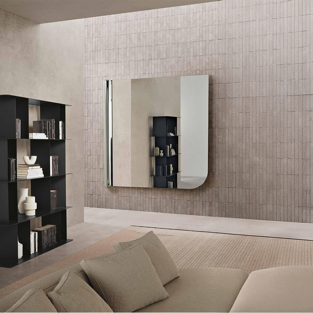 Lo specchio Otera รจ un modello quadrato in vetro fuso, caratterizzato da una decorazione ad onda che ne anima la superficie con un effetto morbido e dinamico.