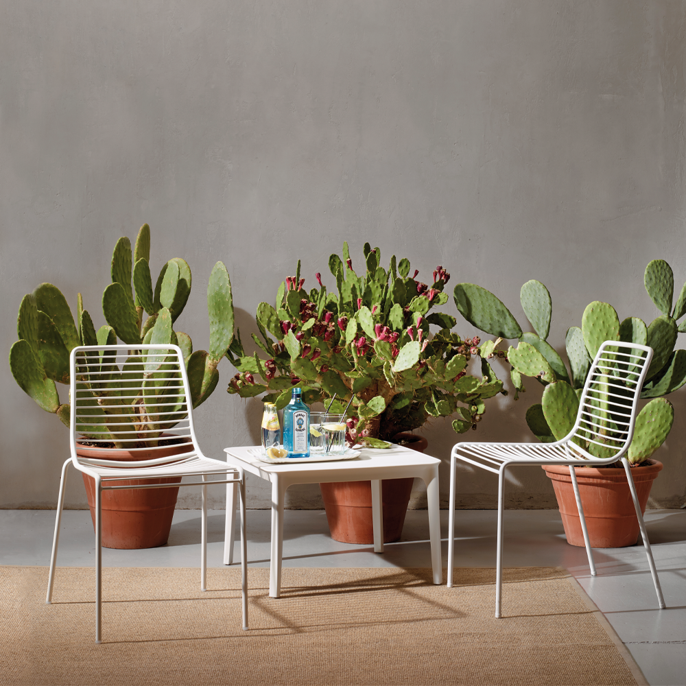Set di 2 tavolini impilabili in tecnopolimero rinforzato. Adatti ad uso interno ed esterno.