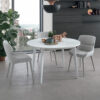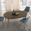 Il tavolo allungabile rotondo Aiace รจ dotato di un pratico sistema di allunga centrale a libro, che permette di estenderne la superficie in pochi gesti.