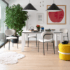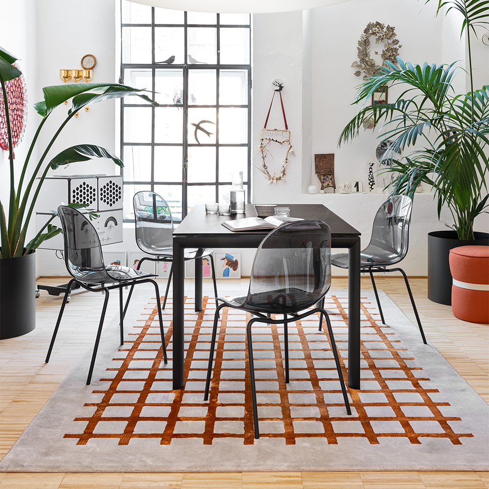 Le gambe perimetrali assicurano stabilità e permettono di sfruttare al meglio lo spazio per le sedute, offrendo comfort e praticità.