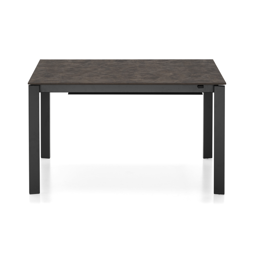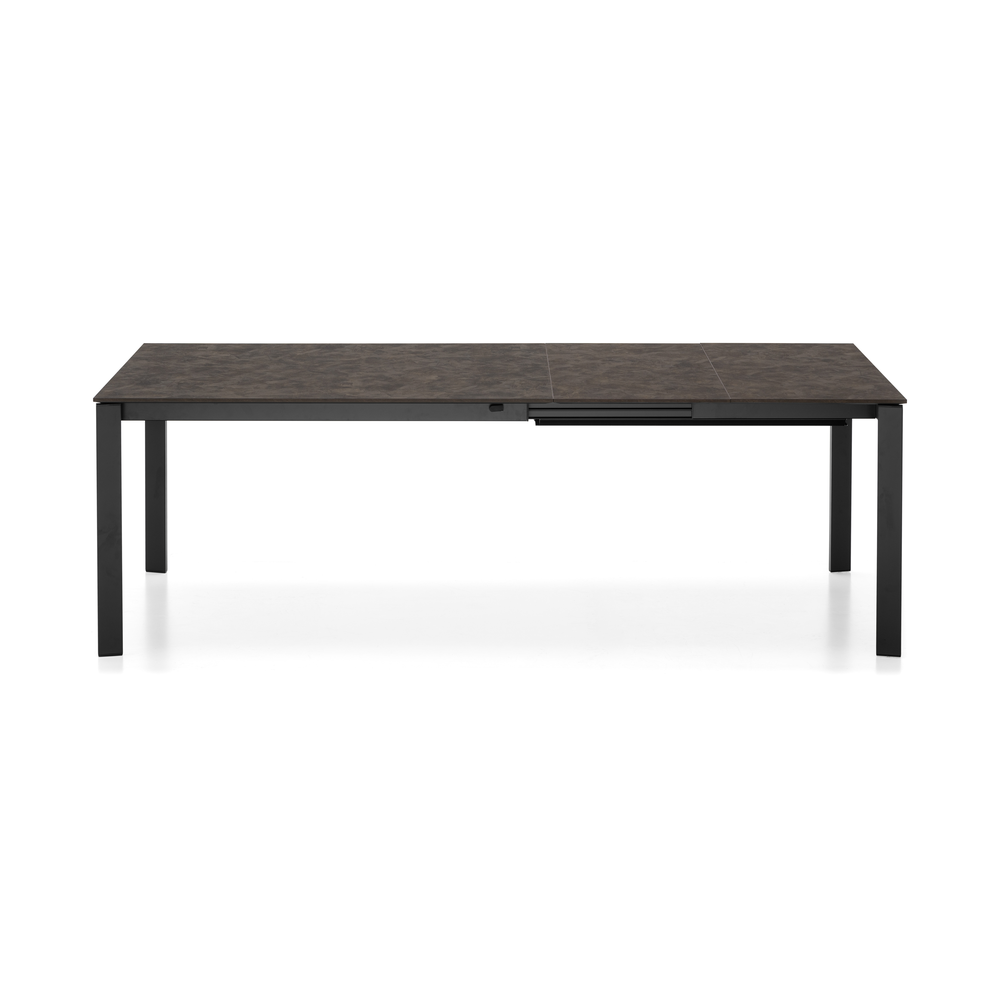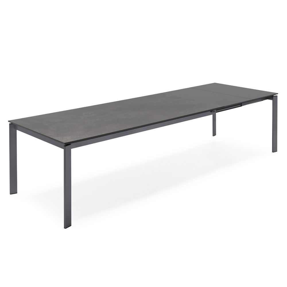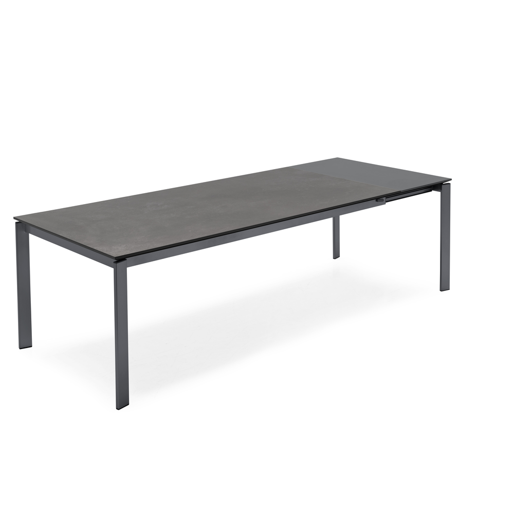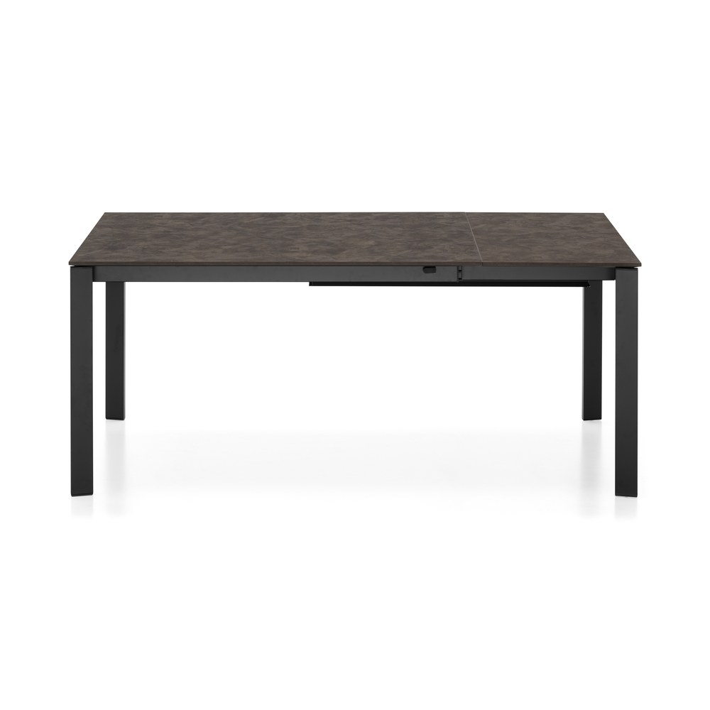 Tavolo allungabile rettangolare con struttura in metallo e piano in nobilitato o ceramica su vetro.