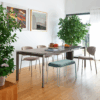 Le gambe perimetrali assicurano stabilità e consentono di sfruttare al meglio lo spazio per le sedute, rendendo il tavolo comodo e funzionale sia per l’uso quotidiano sia per le occasioni che richiedono un piano più ampio.