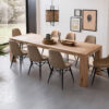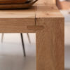Tavolo allungabile con sistema di allunga tradizionale. Basamento in legno e piano in cerro in varie finiture.