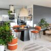 HEY GIO! ร il tavolo perfetto per la convivialitร , realizzato con un elegante tronco di cono in lamiera verniciata che sorregge il piano a scelta tra rotondo o quadrato.