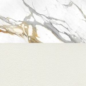 Nella versione con piano in marmo Borghini opaco, la base è bianca; con piano in travertino opaco, la base assume una finitura perla beige; nella versione con piano marrone lucido, la base è marrone; mentre con piano in marmo nero Portoro opaco, la base è nera.
