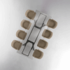 Il piano rettangolare, disponibile in vetro temperato nero fumé o trasparente, conferisce un tocco moderno e crea un effetto visivo leggero, perfetto per ambienti contemporanei.