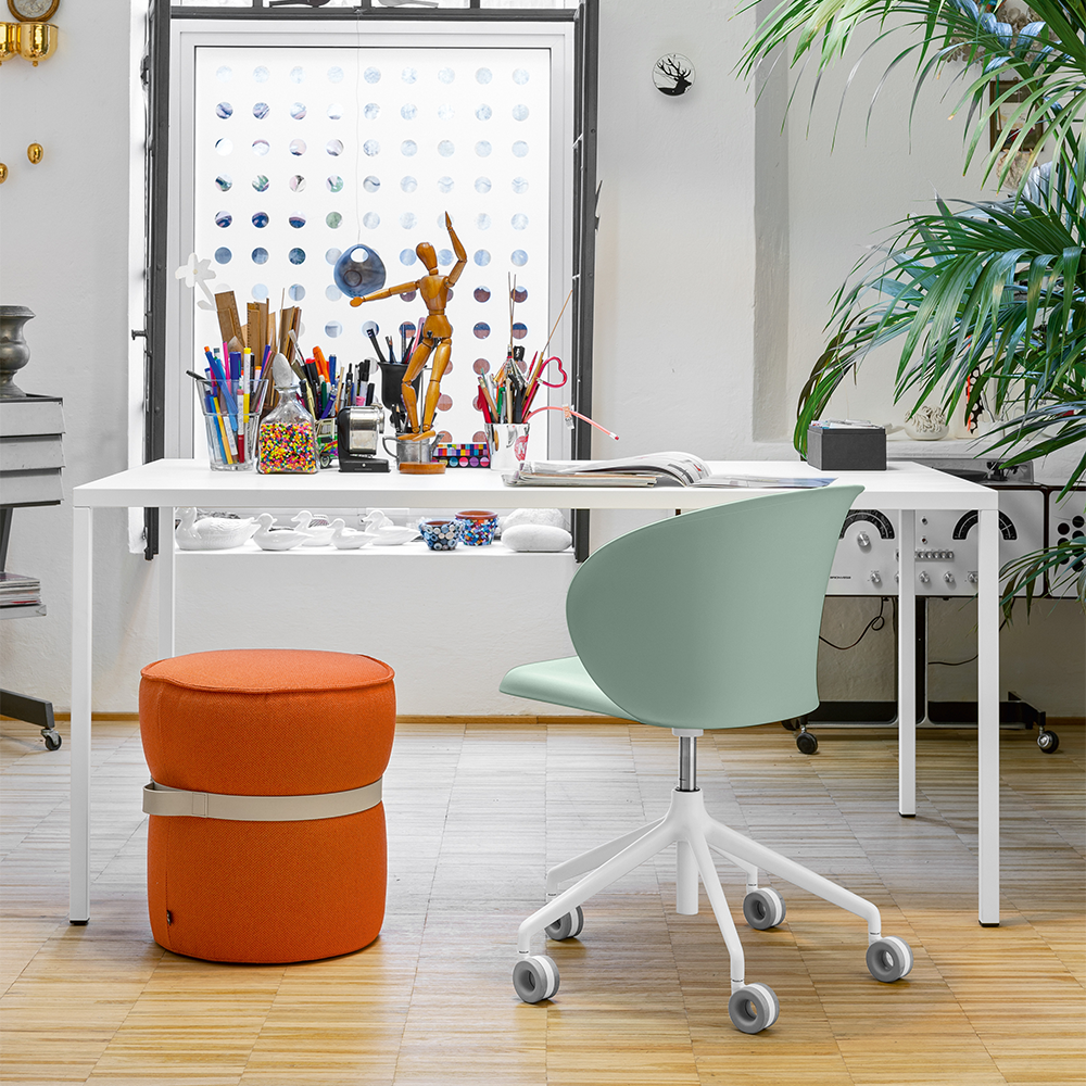 Tavolo fisso rettangolare in metallo nero opaco o bianco ottico opaco. Adatto ad uso interno ed esterno.