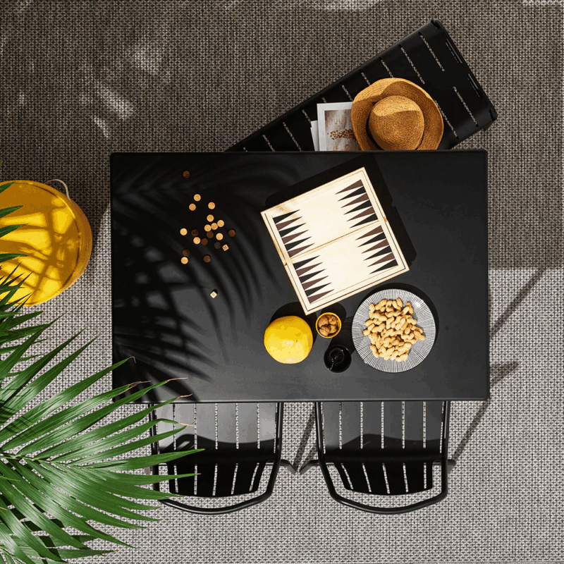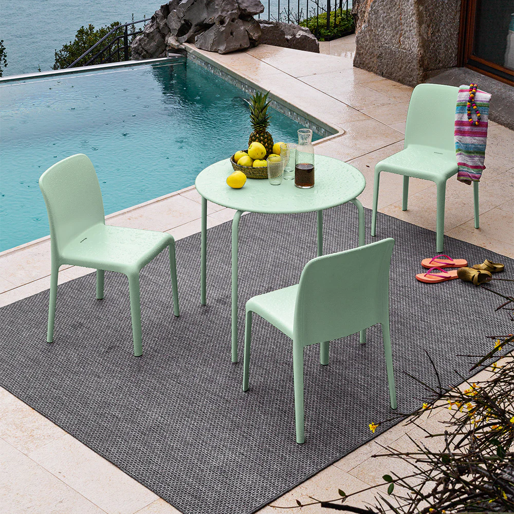 Questo modello puรฒ essere impilato fino a 4 unitร , facilitando lo stoccaggio e lโorganizzazione quando non in uso, rendendolo una scelta versatile per terrazze, giardini, balconi o spazi contract.