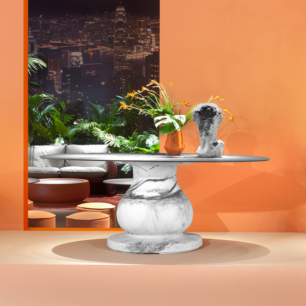 TAVOLO FISSO ROTONDO OTTOCENTO | Ø.140 cm – Polietilene arabescato