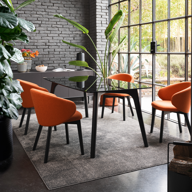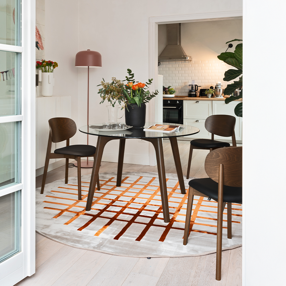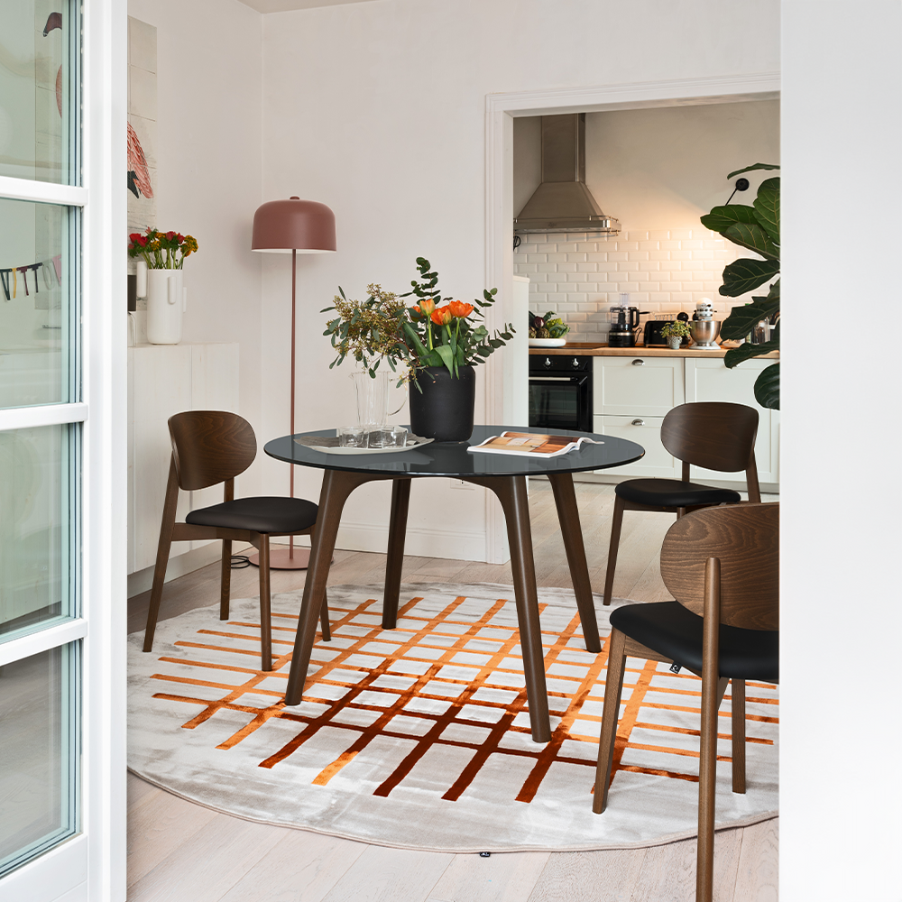 La forma rotonda favorisce la convivialità e rende il tavolo adatto sia ad ambienti domestici sia a spazi contract.