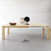 SANTIAGO di AltaCorte รจ un tavolo allungabile in legno dalle linee semplici e intramontabili, contraddistinto dalle 4 gambe in legno a sezione quadrata (12×12 cm) e dal piano con bordo tagliato a 45ยฐ, particolare che gli conferisce una linea sottile e moderna.