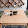 Tavolo quadrato allungabile con bordo inclinato e guide in metallo (allunghe), impiallacciato sp. 2,5 cm