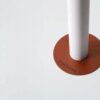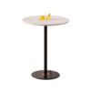 Tavolo fisso tondo con piano in cleaf o HPL. Struttura e anello in metallo.