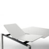 Per quanto riguarda la versione allungabile, i tavoli con piano in vetro e cristalceramica vengono forniti con allunghe in laminato (o fenix per cristalceramica) in tinta. Inoltre, il meccanismo di apertura delle allunghe รจ manuale per tutti i tavoli. Solamente il tavolo quadrato 140 (+1×60) x 140 cm prevede un meccanismo semi automatico con apertura a libro (vedi foto).
