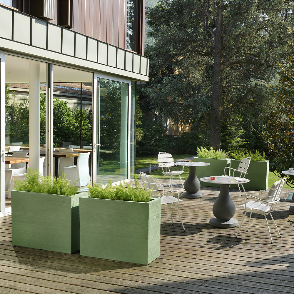 Il vaso Quadra Separé è pensato per l’uso sia interno che esterno, ideale per arredare e allo stesso tempo delimitare spazi in modo semplice e funzionale.